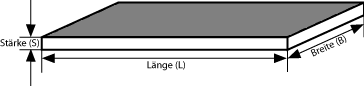 | Abmessung (BxLxS) | 70 x 160 x 1 | 70 x 160 x 3 | 70 x 160 x 5 | 70 x 160 x 8 | 70 x 160 x 12 | 70 x 160 x 15 |